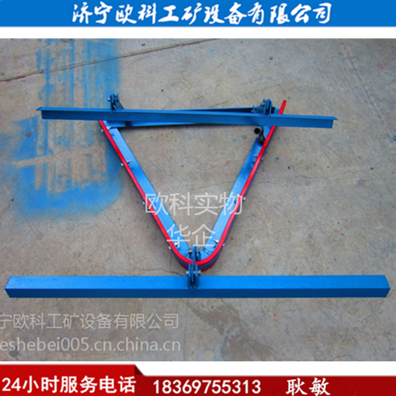 物料在輸送帶工作面上運輸的過程中,會發生跑偏撒料現象,這個時候就需要安 裝空段清掃器。在安 裝過程中,要對接成v字型,工藝上比較麻 煩。根據用戶要求,加工成整體型,v型角為60度。兩邊各帶出各300mm長的刮板。