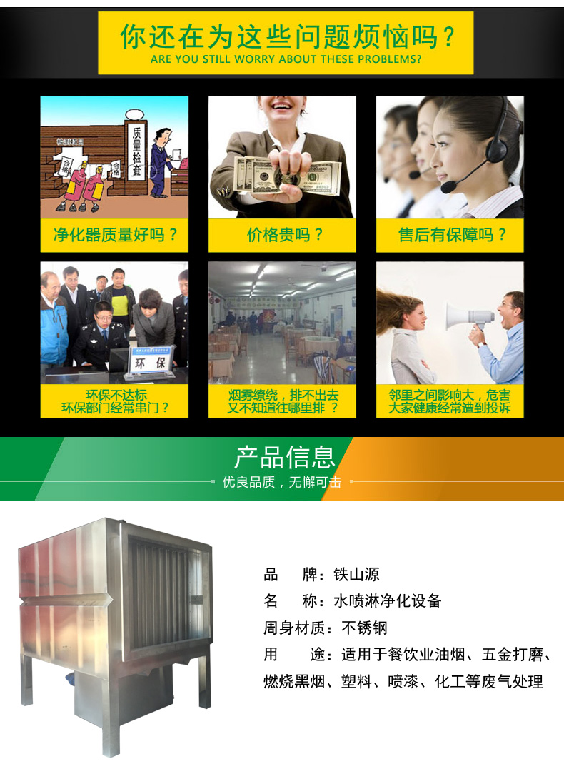 佛 山市鐵山環保科技有限公司是一家致力于油煙凈化產品研發、制造、銷售、設計及系統施工的環保高新企業。鐵山公司自創建以來,秉承、“以人為本、誠信經營、持續發展、合作共贏”為經營理念,本著“質量為先、用戶至上”的企業宗旨,竭誠為廣大客戶提供各種優質產品及先進服務。本公司的產品已廣泛地應用于飲食業在不同環境的高低空油煙排放治理,工業油霧及化工業氣體的治理。并為全國各地的電子、冶金、鋼鐵、化工及造紙等行業提供專業的環保凈化設備及系統的工程服務。公司產品己銷往全國各地,深受廣大用戶的好評。鐵山公司以綠色環保為己任,以科技創新為核心,不斷整合及轉化適合于實際應用的治理技術和服務能力,以持續地滿足客戶發展和市場發展的需求,正努力將鐵山環保打造為國內一流的環保公司而奮斗。