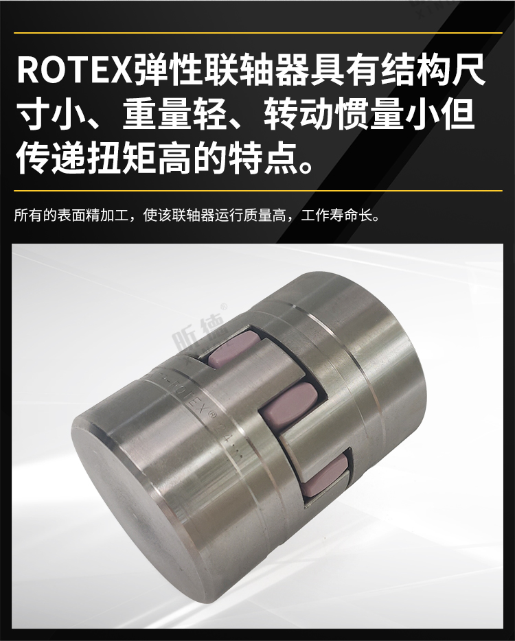 rotex彈性聯軸器具有結構尺寸小、重量輕、轉動慣量小但傳遞扭矩高的特點。
