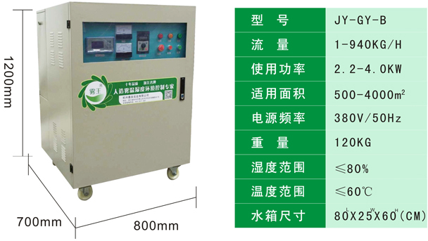 產品型號:jy-gy-b 加濕量:1-940kg/h 電源頻率:380v/50hz