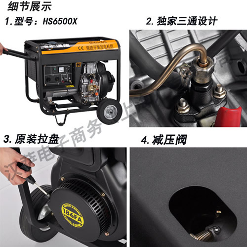 品質(zhì)優(yōu)良、低燃油消耗、噪聲低、輸出功率大,性能可靠。其可靠的穩(wěn)定性、經(jīng)濟(jì)性、動力性、耐久性和環(huán)境安 全性受到國內(nèi)外用戶的歡迎,全球三包連保。中德合資德國進(jìn)口漢薩,德國羅賓發(fā)動機(jī)具有體積小、重量輕、油耗低、功率高、工作可靠,配件供應(yīng)及維修方便。采用電子調(diào)速器,具有冷卻水溫過高、機(jī)油壓力低及超速報警并自動停車等保護(hù)功能。