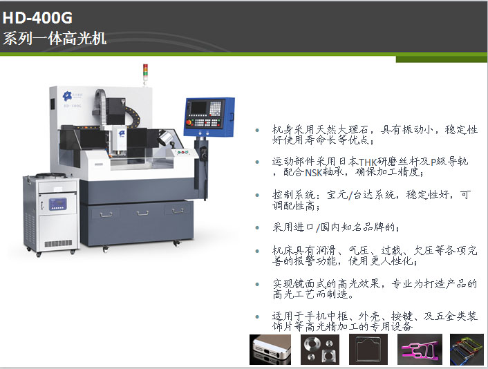 hd-400g是手機中框、外殼、按鍵等數碼產品高光專用設備!