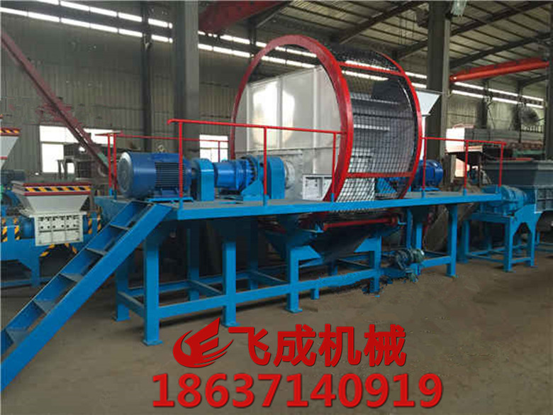 飛成機械經過幾年的潛心研究并借鑒了國外同類產品的先進經驗,通過不斷地改進,已成功研制出大型全自動撕碎機組,該機組自動化程度高,生產效率高,能使用戶經濟有效地利用大直徑輪胎。凡是在投料箱口范圍內可投入的報廢輪胎,其他橡膠料都可不須切割分解,直接進行撕碎破碎工作。