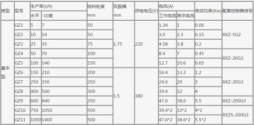 gz5電磁振動給料機技術參數表: