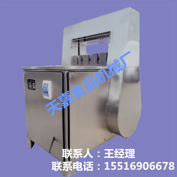天嘉凍肉切片機,可將凍肉在不解凍的前提下(50斤/盤)直接上機切成任意厚度的段或薄片,供絞肉機、斬拌機加工使用。本機外殼采用噴塑和不銹鋼制造,切刀用特殊鋼制成,耐磨,耐用。外形美觀,結構簡單,維修方便,速度快、效率高、價格低、省時省力等特點。替代了人工坎肉、大大降低了勞動強度,是肉食品加工企業(yè)不可缺少的設備。該機分為全自動型 半自動型,不管是大型生產(chǎn)企業(yè),還是中小型食品肉類加工廠 、工作坊都可以根據(jù)自已生產(chǎn)量選擇適合自己設備。