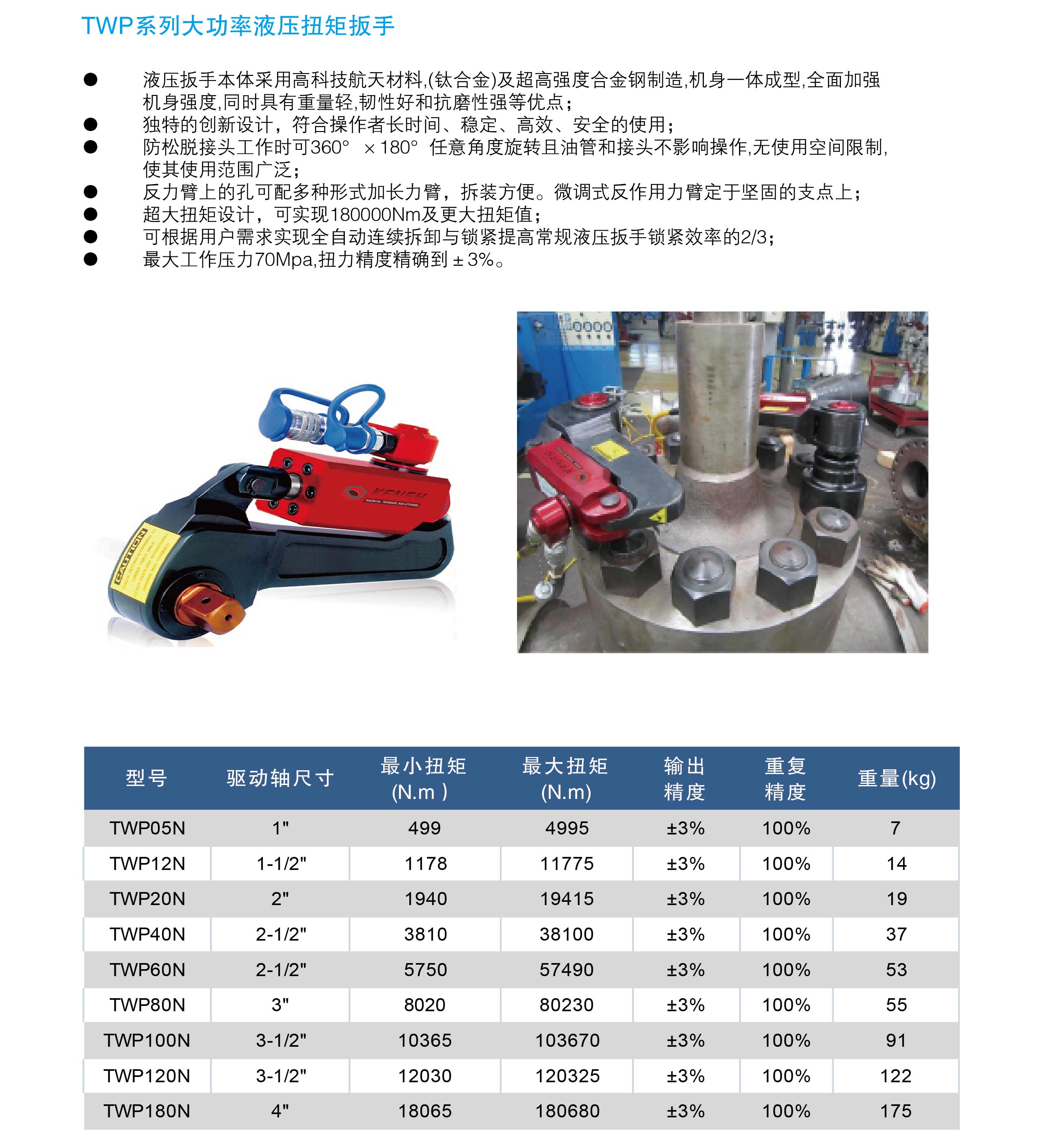 7、最大工作壓力70mpa,扭力精度精確到±3%。