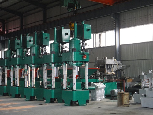 “鑫源”牌全自動液壓金屬屑壓塊機能將各種金屬屑(鐵屑、銅屑、鋁屑、鈦等)、粉 粒狀金屬粉 (鐵粉 、鋁粉 、銅粉 、鉛粉 等)、冶煉添加劑 、海綿鐵等在不加入任何粘合劑 的情況下壓制成高密度圓柱形餅塊(重量2-8公斤),餅塊密度可達5t/m3以上(原材料不同,壓出餅塊密度不重量也不相同),壓制成的餅塊可直接投爐使用。鑄鐵牌號可達ht200-250,每噸鑄件可節約成本700元左右。