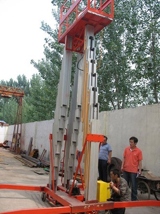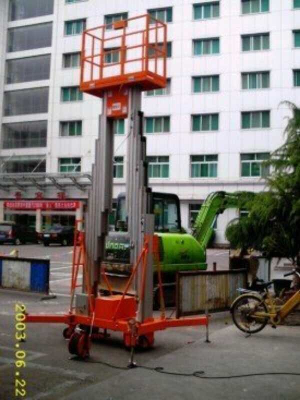 雙桅桿鋁合金升降機系列其價格比吊臂式升降臺要便宜50%,除了價格便宜外,雙人升降臺系列在狹窄通道的靈活性,使其能完成許多吊臂式升降臺不能完成的工作。可單人或雙人操作,寬闊的平臺提供足夠的空間,便于操作人員作業,擺放工具。具有最剛硬的升降桅柱系統,其特征是:高強度的鋁合金桅桿,互鎖系統,可伸縮柱及安  全系數大于10:1的高強度的起重鏈,并設有鋼絲安  全保護系統可用來加強力度及可靠性能,維修方便,其焊接式高強度的鋼底座適合于惡劣的工作環境。雙桅桿鋁合金升降平臺是本公司獨有的產品,由電液傳動,安  全可靠,最高工作高度可達16米,最大載重250kg左右,需要進入普通載客電梯設計的新型產品,具有體積緊湊,安  全堅固,使用方便的特性。種類:分別有sjyl-9ii、10ii、11ii、12ii、13ii、14ii,16ii,最高工作高度為18米。采用高質鋁合金材料制,設計輕巧,堅固安  全,寬闊平臺能負載共兩人及工具工作,更有效及安  全。優點 :                  1、最高工作度為18米