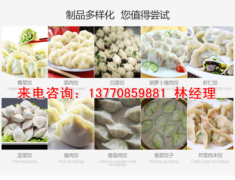 ◆本機(jī)可以生產(chǎn)速凍餃子等,能生產(chǎn)各種肉餡、肉菜混合餡、全菜餡及其它種餡的餃子。適用于餃子館、食品生產(chǎn)廠家、賓館、飯店、餐廳、團(tuán)體食堂、學(xué)校、部隊(duì)。