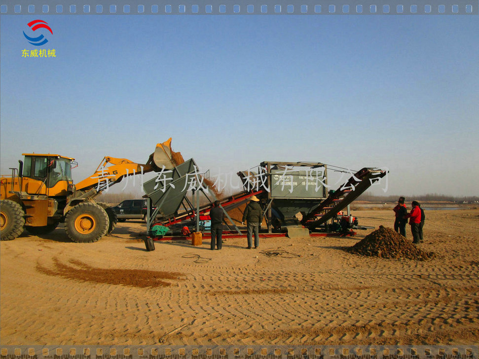 篩沙機是仿照人工利用斜面篩網篩沙的工作原理,采用平置滾篩筒,并保證料流在篩筒中的多圈內螺旋葉片間可連續滾篩五圈以上,從而使砂料反復翻滾、滑動而充分離散、分離;不同于斜置滾篩引起的大小料相互推擠、埋壓,篩分過程匆忙;也不同于斜置振動篩的大小料振跳、混料。
