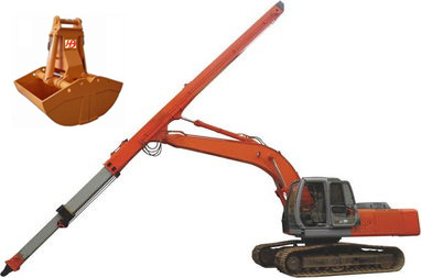 挖機的掘機加長臂的定義:加長臂是屬于挖掘機工作裝置的一組部件,是為了加長挖掘的分類:按其作業(yè)方式來分:拆樓加長臂、深坑加長臂、打樁加長臂等;按段數(shù)來分:二段式、三段式、四段式等; 按其性能來分:固定式、滑移式、伸縮式加長臂等;