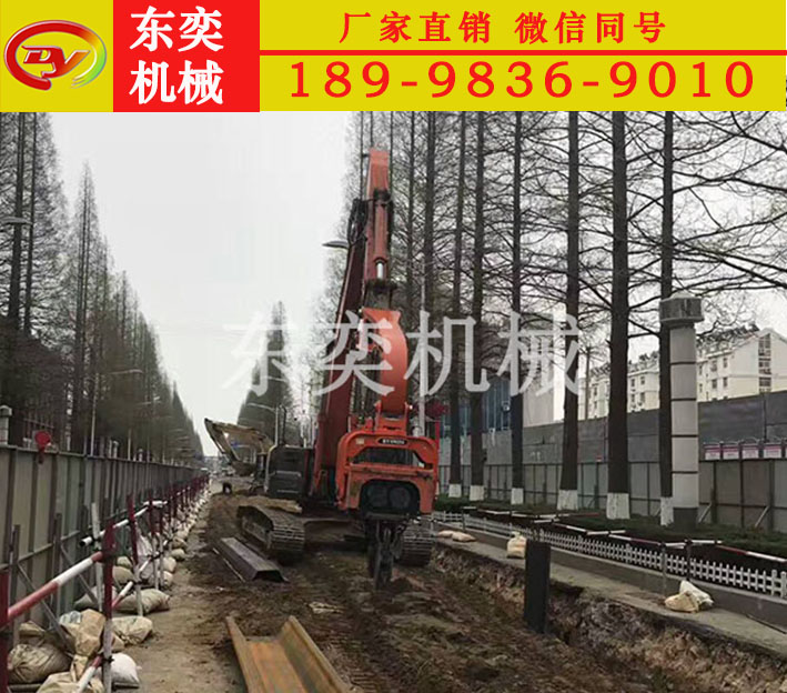 挖掘機液壓振動打樁機是一種廣泛應用各種基礎施工工程的沉拔樁施工機械。是利用其周期的激振力使樁周邊的土壤液化,以減少土壤對樁的摩擦阻力。利用樁體自重和樁錘重量,必要時可附加向下壓力使樁體切入土層;反之,施加向上拉力,可把樁體拔出土層。具有噪音低,沉樁效果好,可在水下作業等優點;液壓振動錘發展速度并廣泛用于沉拔樁施工中。