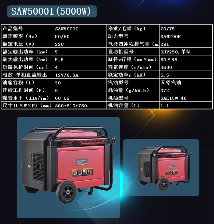 5kw數碼變頻發電機高配置