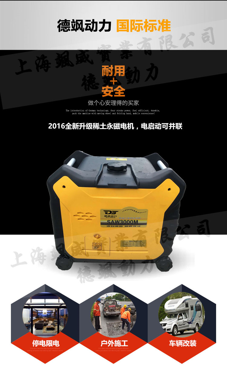 德颯動力集研發.制造.進出口貿易。.新型電子商務為一體的綜合性實業公司。公司下設:德颯動力設備公司(各種發電機,發電焊機,大功率發電機),德颯動力工具公司,德颯動力電子商務公司,德颯動力國內貿易,進出口貿易公司。多年來,公司引進先進的管理技術和務實的品牌理念,成功打造了:德颯動力,并在上海嘉定工業區,蘇州工業園區,江蘇海洋開發區建有生產基地。 燃氣發電機|柴油發電電焊機|天然氣發電機|家用汽油發電機|汽油發電電焊機-德颯動力公司秉承“服務贏得信賴,科技開創未來”的宗旨,將“德颯動力,讓世界充滿光明”視為最高使命,與德颯的伙伴們攜手共進,為成為世界一流的品牌企業而努力奮斗 !