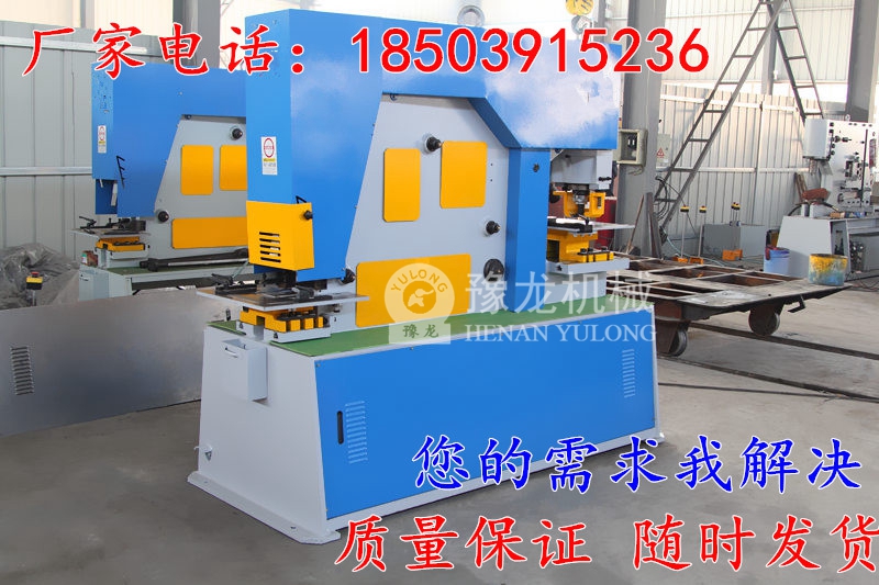 沖剪機的床身由機身、機座、型鋼支架、剪切工作臺組成。機身、機座采用鋼板焊接,其它采用螺栓連接,既保證工作時的強度和剛性,又保證維修裝拆時的方便。*多功能液壓聯合沖剪機的特點: 1.采用液壓傳動,整機結構合理、重量輕、噪音低,輕便可靠且具有過載性能。 2.機器標準配備沖孔工位,槽鋼及角鋼剪切工位,厚板剪切工位,圓鋼及方鋼剪斷工位,切角工位。可選購沖大孔,板材折彎,槽鋼型鋼沖孔,百葉窗及管材切角等附件。 3.標準配備五個工位及雙液壓工作站。可同時獨立工作。機器無須進行任何水平調試,擺放就位后即可使用。