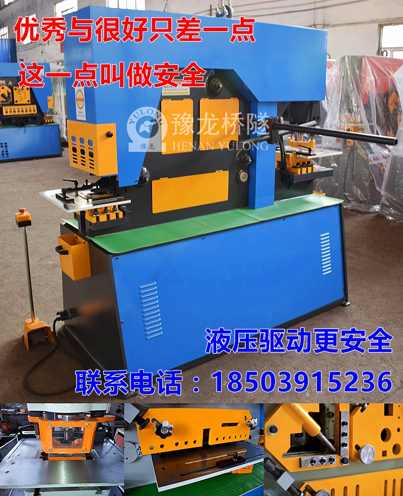 多功能液壓聯合沖剪機說明:采用液壓傳動,是目前國內聯合沖剪機最新產品,能對板材、方鋼、圓鋼、角鋼、槽鋼、工字鋼進行剪切、沖孔、模剪,并配備剪切擋料裝置。四川沖剪一體機使用。