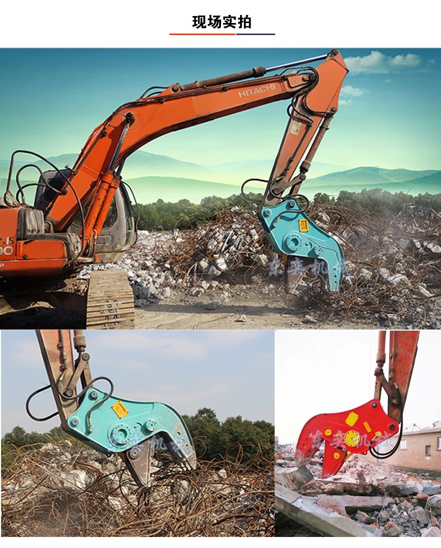 挖掘機液壓鉗又名挖掘機破碎鉗,拆遷破碎剪。近幾年在國內逐漸受到客戶認可,在拆遷中粉 碎混凝土作業效率高,搭配破碎錘使用,免除了人工作業的危險性高 成本高的缺點。液壓鉗由鉗體、油缸,運動顎、固定顎四大部件組成,通過液壓系統對液壓油缸施加運動壓力,使液壓鉗的運動顎和固定顎實現張合運動,實現粉 碎效果。所有的破碎鉗都配備了一個強有力的油缸,運用不同的壓力來處理不同的工況,所有型號都配備鋼筋切割刀片。 二次破拆指初次破拆后混凝土等的粉 碎以便于裝載和運輸用于回收再用,二次破拆最有效的方法是使鋼筋分離。極其堅固的牙齒系統,優質合金鋼,高性能的油缸,組成我們東奕機械全新的hc系列粉 碎鉗。