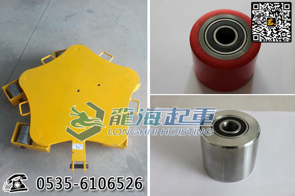 【每個輪子360度旋轉,轉向方便】crwk萬向搬運小坦克車為龍海起重工具“龍升搬運小坦克系列”產品,每個輪子均可單獨360°旋轉,轉向靈活,搬運方便,同時我們可根據客戶要求定制不同材質的輪子。