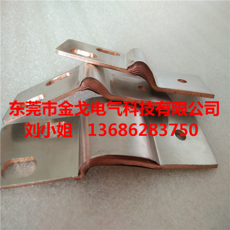 工藝制作:擴散焊軟連接壓焊是將多層銅箔疊片部分壓在一起,采用分子擴散焊,通過大電流加熱壓焊成型。銅箔:0.05mm至0.5mm厚。