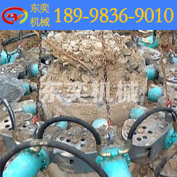 液壓破樁機主要由動力源和工作裝置兩部分組成,破樁機通過動力源給破樁機多個油缸提供壓力,油缸直接驅動釬桿,同時擠壓樁身,使樁頭截除。工作裝置由多個相同型號的液壓油缸組合成不同直徑的破樁機,滿足各種直徑的樁型破樁頭的要求,這種油缸的活塞采用合金鋼加工而成,能滿足各種標號的混泥土的破碎要求。動力源可采用固定的泵站或是其它可移動的工程機械設備,一般情況下,在高層建筑樁基礎施工中采用泵站的比較多,這種組合方式的設備總體投資比較小,但是移動不是很方便,適合用于群樁的樁頭破除中; 在橋梁施工中采用移動方便的挖掘機作為動力源的比較多,將挖掘機的挖斗取下,在挖斗與大臂連接軸處懸掛破樁機的吊裝鏈,將這兩種設備機械組合在一起,然后再將挖掘機的任何一根油缸的液壓油路通過平衡閥連接到破樁機的油缸油路上,用以驅動破樁機的油缸組工作。這種組合的破樁機移動方便,作業面比較廣,適用于樁不集中,作業戰線長的施工項目,但是投資相對比較大。