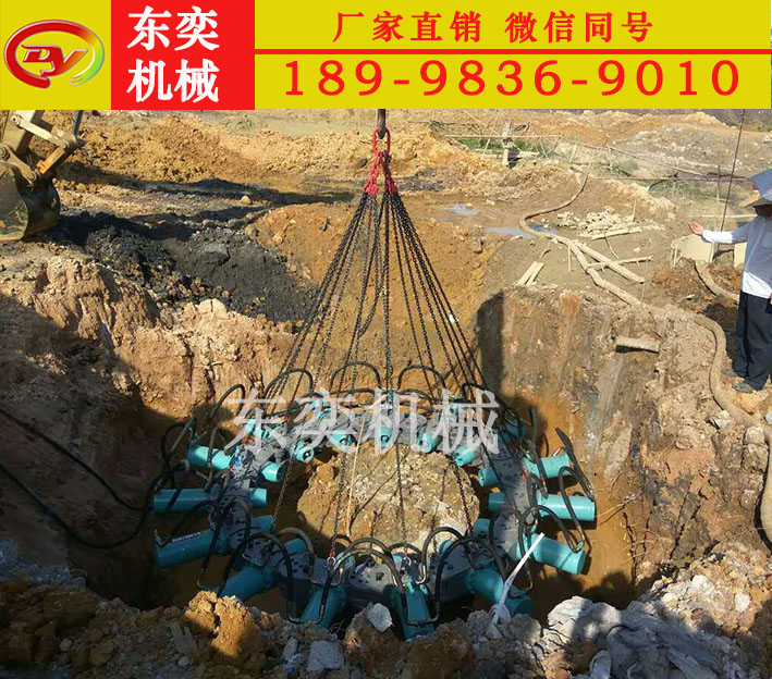 傳統(tǒng)的樁頭破除方法大多采用破碎錘打擊、人工打釬或風鎬拆除等方法;然而上述傳統(tǒng)方法存在著多種弊端:破碎錘敲擊雖然工作效率高,但因為打擊力過大,因此常常將樁頭保留部分內(nèi)部結構震壞,日后使用過程中常常出現(xiàn)安 全隱患;人工打釬方法不僅勞動強度大、破碎效率低下,而且對于鋼筋混凝土基本上效果不明顯;風鎬敲擊,雖然震動小,但每次打下混凝土塊僅鵝卵石大小,破碎效率十分的低下。