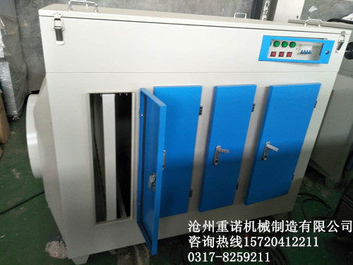2.混合氣體中需要有足夠的含氧量,才能產生足夠的游離態氧和臭氧與裂解后的惡臭氣體分子基團結合產生無污染的低分子化合物。因此不適應處理濃度過高的廢氣,如處理高濃度廢氣時,應相應的補充一部分新鮮風以增加含氧量。