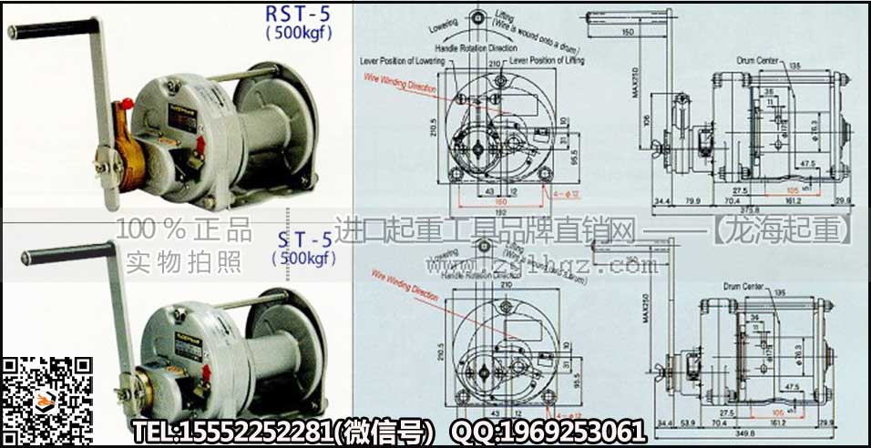 日本rst型大力手動絞盤技術(shù)參數(shù):