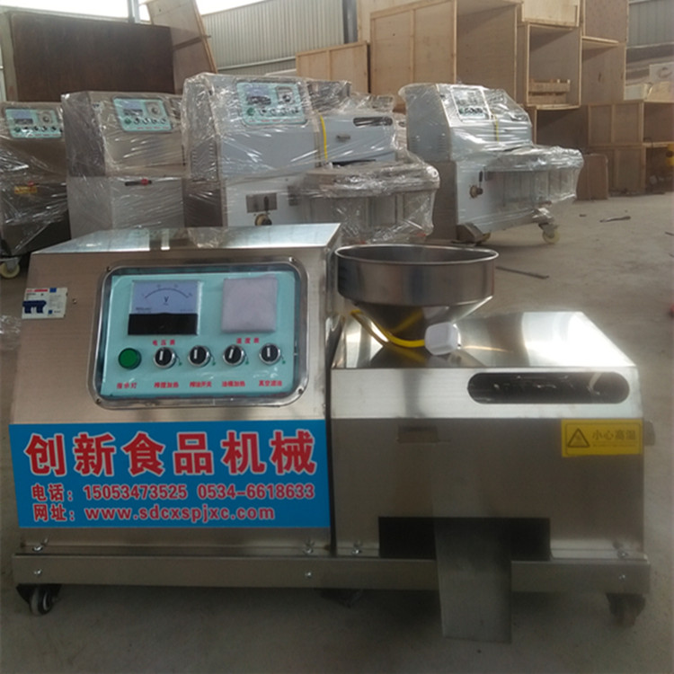 創(chuàng)新食品機(jī)械全自動(dòng)螺旋榨油機(jī),它是十多年前國內(nèi)在韓國引進(jìn)的技術(shù),用真空過濾,自動(dòng)溫控功能。出來的產(chǎn)品油質(zhì)量好。味道香,出油率還高。現(xiàn)在主要是農(nóng)村地區(qū)做加工用的。或者是在城市市區(qū)做現(xiàn)場加工用的,這樣看起來生產(chǎn)更透明化,讓客戶更放心。對生意的開展有很大的好處。好多地區(qū)現(xiàn)在都照這個(gè)模式經(jīng)營,利潤相當(dāng)?shù)呢S厚。