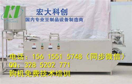 2.宏大豆腐皮機,豆腐皮機器多少錢全自動豆腐皮機操作簡單,制作快,成張性好,不碎不破,無裂紋,易于加工,包菜打結,山東豆腐皮薄厚均勻,厚薄可調(0.2-3毫米)韌性好,疊起來用手摔不爛,口感好,不論涼拌 小菜,煎炒,打湯,燴菜,均是美味佳肴,保持了傳統優質豆腐皮的口感和風味!