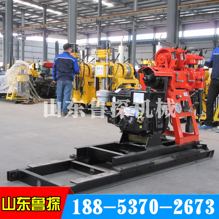 買鉆機(jī)做地質(zhì)勘探選山東魯探機(jī)械,公司專注于勘探鉆機(jī)研究,十年磨一劍鋒從磨礪出,魯探不忘初心砥礪前行,現(xiàn)已建立完善的產(chǎn)品研發(fā)、銷售、售后于一體的產(chǎn)品優(yōu)質(zhì)服務(wù)體系。公司現(xiàn)專業(yè)供應(yīng)hz-130yy液壓勘探鉆機(jī) 一、hz-130yy液壓勘探鉆機(jī)簡介 hz-130yy液壓勘探鉆機(jī)在普通鉆機(jī)基礎(chǔ)上增加鉆機(jī)移位滑道,可實現(xiàn)快速更換鉆具提高工作效率降低勞動強(qiáng)度。 二、hz-130yy液壓勘探鉆機(jī)適用范圍 1、本鉆機(jī)適用于水井鉆探,普查勘探,地球物理勘探,各種礦山的鉆探、道路及建筑勘探以及打爆破孔等鉆進(jìn)工程。 2、可根據(jù)底層的不同選用合金、金剛石及復(fù)合片等鉆頭進(jìn)行鉆進(jìn)。 3、可鉆2-9級的沙質(zhì)粘土及巖層等。 三、hz-130yy液壓勘探鉆機(jī)主要特點 1、具有油壓自動進(jìn)給機(jī)構(gòu),提高鉆進(jìn)效率,減輕工人勞動強(qiáng)度。 2、采用球卡夾持機(jī)構(gòu)代替卡盤,可實行不停機(jī)倒桿,幫你選擇,安 全可靠。 3、卷揚機(jī)加裝保持架,形成雙面支撐星輪的結(jié)構(gòu),可承受強(qiáng)烈沖擊 4、立軸箱四組軸承定位,保證回轉(zhuǎn)器有足夠剛性應(yīng)對碎石層,卵石層等復(fù)雜地質(zhì)條件。 5、本機(jī)采用國家專利技術(shù)的錐度離合器,具有傳遞扭矩大,幫你選擇,免維護(hù)的突出特點。 四、hz-130yy液壓勘探鉆機(jī)技術(shù)參數(shù)