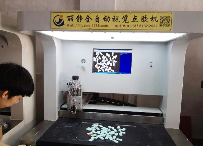 麗靜自主研發ccd視覺旋轉定位貼片(貼物)機,先點膠后取料,吸嘴取料每次通過視覺定位計算偏移角度,然后放到同點膠精準的位置。