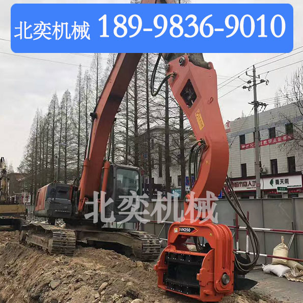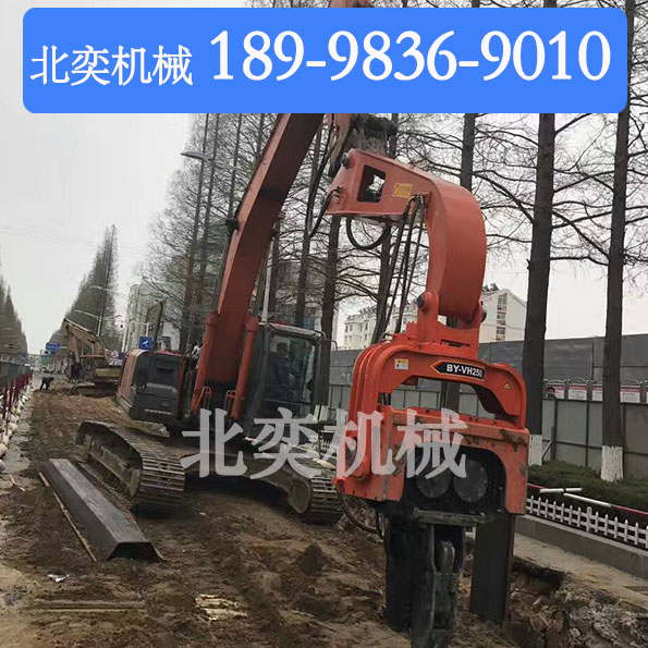 6、先進油路設計,使卡樁和振動同步進行,提高打,撥樁效率,更好的保護了挖掘機的主油系統,新設計安 全裝置,當震動作業時安 全裝置使夾頭自動加緊,不和樁板松脫,安 全高效;