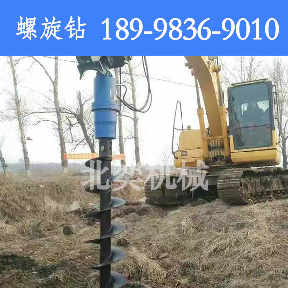 挖掘機螺旋鉆機能打孔深度達到9米,直徑200mm-1000mm,打孔過程中,打孔位置可前后左右迅速調整。挖掘機打孔機 挖掘機改鉆孔機操作方便靈活,適用范圍廣,機動性能強,施工效率高,成本低廉。深受用戶們的喜愛!適用范圍:電線桿鉆孔,高速護欄打樁,建筑打樁鉆孔,光伏發電鉆孔,植樹鉆孔,苗木種植鉆孔等一切鉆孔工程。全部采用液壓控制,操作方便,單人即可完成操作,鉆孔速度快。鉆孔無需清土,一個人即可完成工作,鉆到深度后,可將鉆桿提起,土都附著在螺旋葉片上,很少有回落。提起后只需將鉆桿正反轉動記下土就會自然落下。挖掘機打孔機 挖掘機改鉆孔機可以實現單人操作,車到孔成,隨鉆隨走。大大提高工作效率。