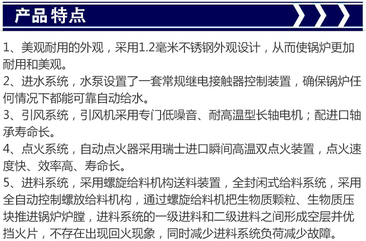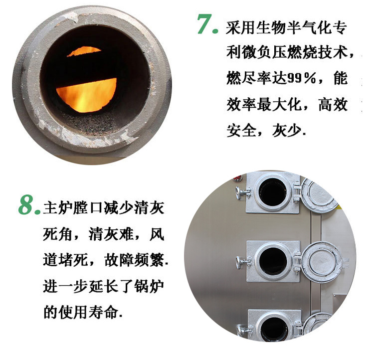 臥式蒸汽鍋爐為鍋殼式全濕背順流三回程煙火管結(jié)構(gòu),火焰在大燃燒室內(nèi)微正壓燃燒,完全伸展,燃燒熱負荷低,燃燒熱效率高,有效地降低了排煙溫度,節(jié)能降耗,使用經(jīng)濟。波形爐膽和螺紋煙管結(jié)構(gòu),即提高了鍋爐的吸熱強度,又滿足了換熱面受熱膨脹的需要,科學(xué)合理,經(jīng)久耐用。
