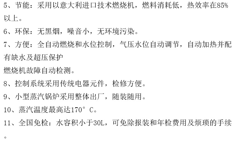 1、先進(jìn)的蒸汽鍋爐全自動(dòng)控制器,全中文液晶屏,指一動(dòng),用戶只需輕松設(shè)定,鍋爐即能按用戶要求啟停、負(fù)荷調(diào)節(jié)、自動(dòng)給水等全自動(dòng)運(yùn)作。鍋爐功能完備,保護(hù)齊全,操作簡(jiǎn)單,安 全可靠,具有自我診斷功能。鍋爐運(yùn)行中一旦出現(xiàn)異,F(xiàn)象就自動(dòng)中斷燃燒,發(fā)出聲光報(bào)警。