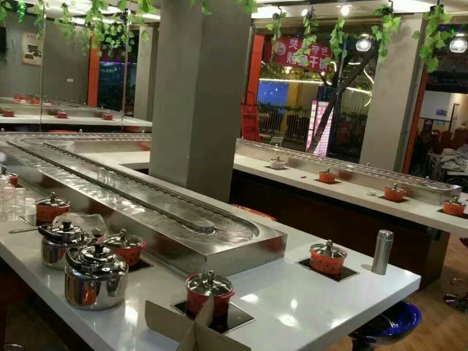 自助回轉(zhuǎn)火鍋 自助回轉(zhuǎn)壽司 回轉(zhuǎn)壽司主要用于日本料理、韓國(guó)料理、西餐廳及自助餐廳等,速度為0-5米/分鐘可調(diào)節(jié),鏈板為特制月牙形不銹鋼鏈板,其設(shè)備安 裝后,業(yè)主可根據(jù)自身情況可進(jìn)行裝修,客人用餐臺(tái)面可用大理石或?qū)嵞狙b修,設(shè)備還可根據(jù)業(yè)主餐廳布置的要求,來(lái)做不同形狀,其價(jià)格合理,外觀精美,無(wú)噪音等特點(diǎn)。火鍋線,旋轉(zhuǎn)壽司線,旋轉(zhuǎn)火鍋線結(jié)構(gòu)概要: