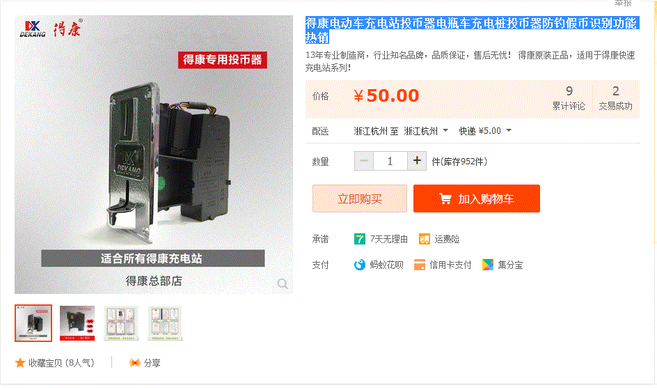 得康電動車充電站投幣_器電瓶車充電樁投幣_器防釣假_幣_識別功能熱銷