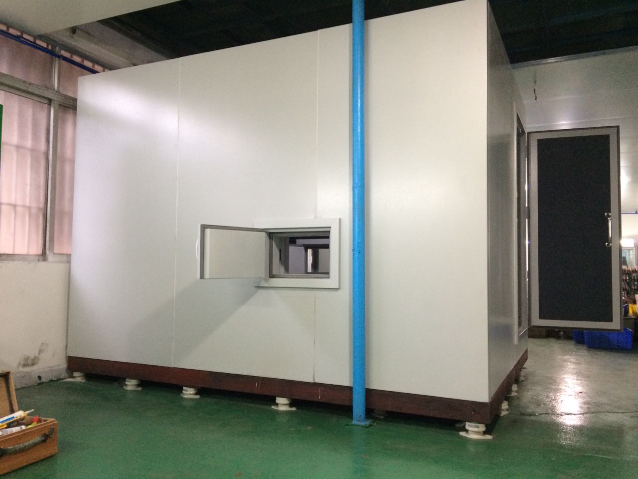 隔音室整體為懸浮結構,不會產生剛性接觸;模塊化墻體,模塊結構之間采用搭接口及緊鎖裝置,可拆卸重裝。