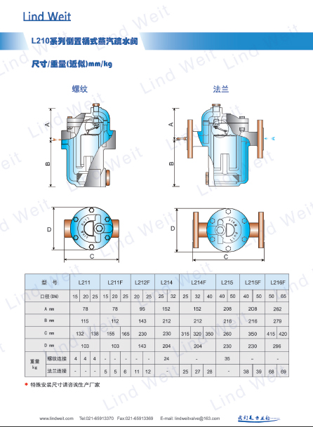 林德偉特倒桶式疏水閥產品特點: