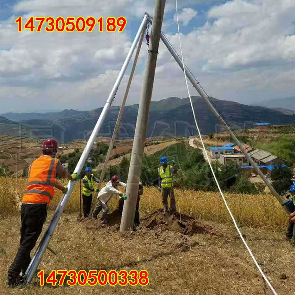 立桿機抱桿又名人字立桿機,鋁合金立桿機。三腳架立桿機適用于立桿、起吊下軸電纜,鋼絞線等貨物,他的特點主材采用高強鋁合金,安 全可靠,自重輕。