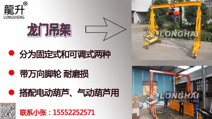 龍門吊架可與智能提升機(jī)、手拉葫蘆、電動(dòng)葫蘆、手扳葫蘆、氣動(dòng)葫蘆、氣動(dòng)平衡器搭配使用,適用于建筑、煤礦、汽車制造、模具鑄造車間、機(jī)械車間工位吊裝作業(yè)與碼頭倉(cāng)庫(kù)裝卸貨物等場(chǎng)合。