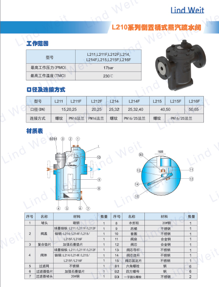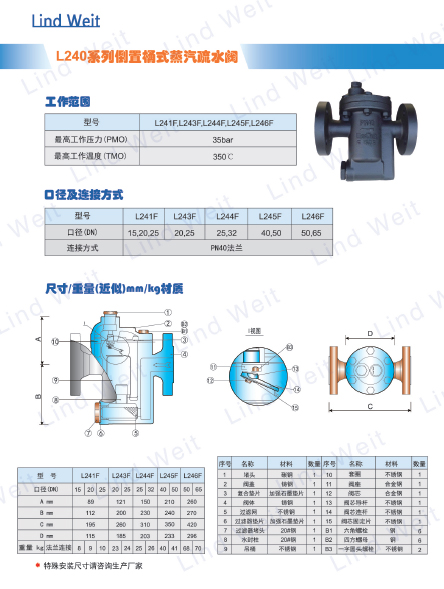 林德偉特浮桶式蒸汽疏水閥產品特點: