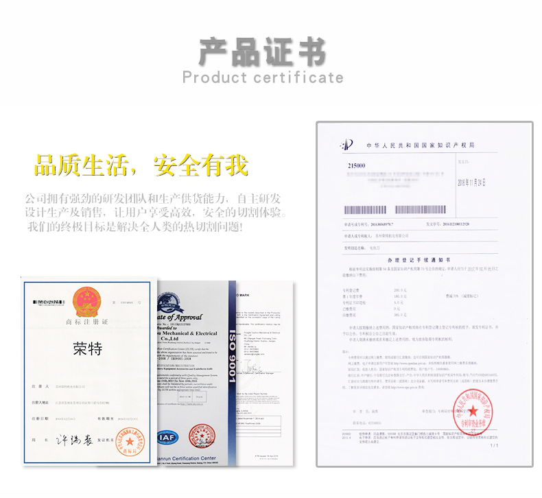 蘇州榮特機電有限公司,主要生產(chǎn)電熱刀、電熱絲切割機、泡沫切割刀,數(shù)控泡沫切割設備、熱切刀、電熱泡沫切割機、EPS泡沫切割刀、EVA海綿切割刀、珍珠棉KT板等材料的電熱切割設備,共有九大列電熱熱切割產(chǎn)品,在蘇州吳中區(qū)3180平方生產(chǎn)車間,擁有標準化的手持式、臺式、數(shù)控電熱刀產(chǎn)品生產(chǎn)線,電熱刀系列產(chǎn)品外銷出口60多個國家。...