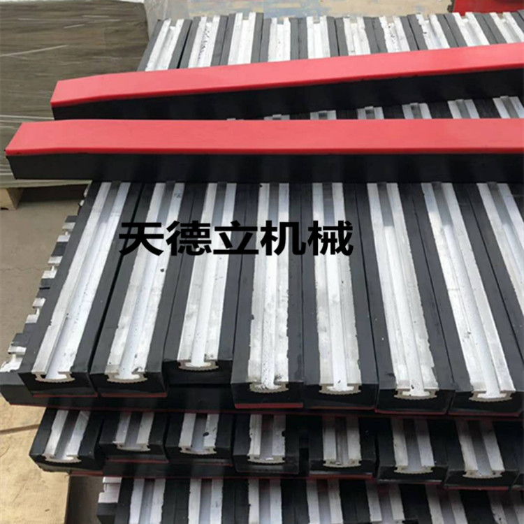 是由橡膠、聚乙烯,耐磨板金屬型材 鋼件或鋁型材、高板材按同一種結構方式粘合為一體的組合件。由多件緩沖條和其它結構件組合成緩沖床。