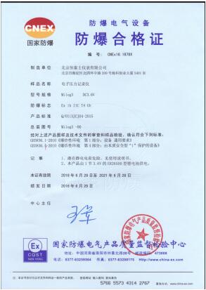 符合gb 3836.1-2010《爆炸性環境 第1部分:設備通用要求》、gb 3836.4-2010《爆炸性環境 第4部分:由本質安 全型“i”保護的設備》標準,防爆標志為:exib ⅱ ct4gb,經國家防爆檢測中心檢驗合格,并取得防爆合格證;
