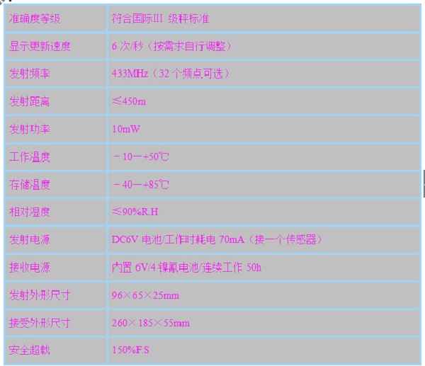 吊秤規格參數: