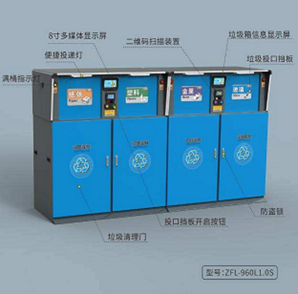 掃碼投遞裝置:用戶對垃圾自行分類后,可使用居民卡或掃描垃圾袋上的二維碼后,按相應一側開關,投口自動打開,投遞完畢后投口自動關閉。