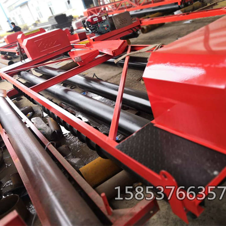 全自動三滾軸攤鋪機混凝土振動梁修建路面橋面被廣泛應用的三滾軸攤鋪機,混凝土振動梁,該產品具有攤鋪,振實,提漿,攤平等多種功能該系列產品具有以下特度1采用內振偏心塊,實施振實與提漿,振動頻率高,密實效果好。2攤鋪機構可實現對混凝土料的均衡攤鋪,節省人力,攤鋪效率高。3高效的振實機構可使混凝土達到流動狀態,從而有效的保證混凝土的密實,特別是對于低塌落度混凝土,也能達到理想的密實和整平效果4采用獨特的轉向于糾偏機構,可方便的實現行駛方向與模板保持平行。5合理的駕駛從總機構設計,使操作方便、舒適、輕松、自如。