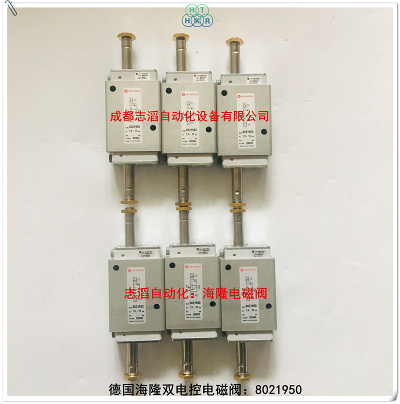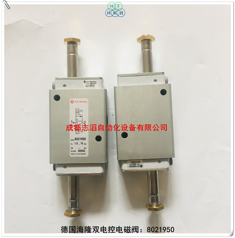8021950德國海隆imi herion雙電控電磁閥技術參數:接口尺寸g1/2、功能nc、雙電控、流量3000l/min、工作壓力1-10bar、響應時間20ms、閥體重量0.99kg、產地為德國、配海隆線圈數量為2個!
