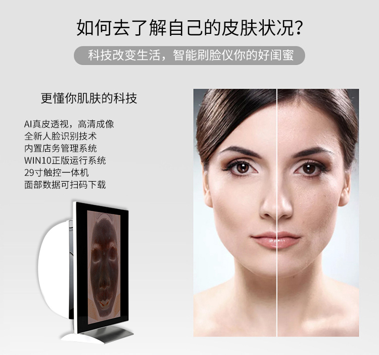 艾顏佳v9s智能美容儀繼v7、v8之后又一款面部識別美容儀,與前兩款產品相比,新上市的v9s增加了ai真皮透視(發明技術)、全新人臉識別技術、人工智能深度學習、和win10正版運行系統,功能增加了很多,運用了全新的技術,讓人眼前一亮。